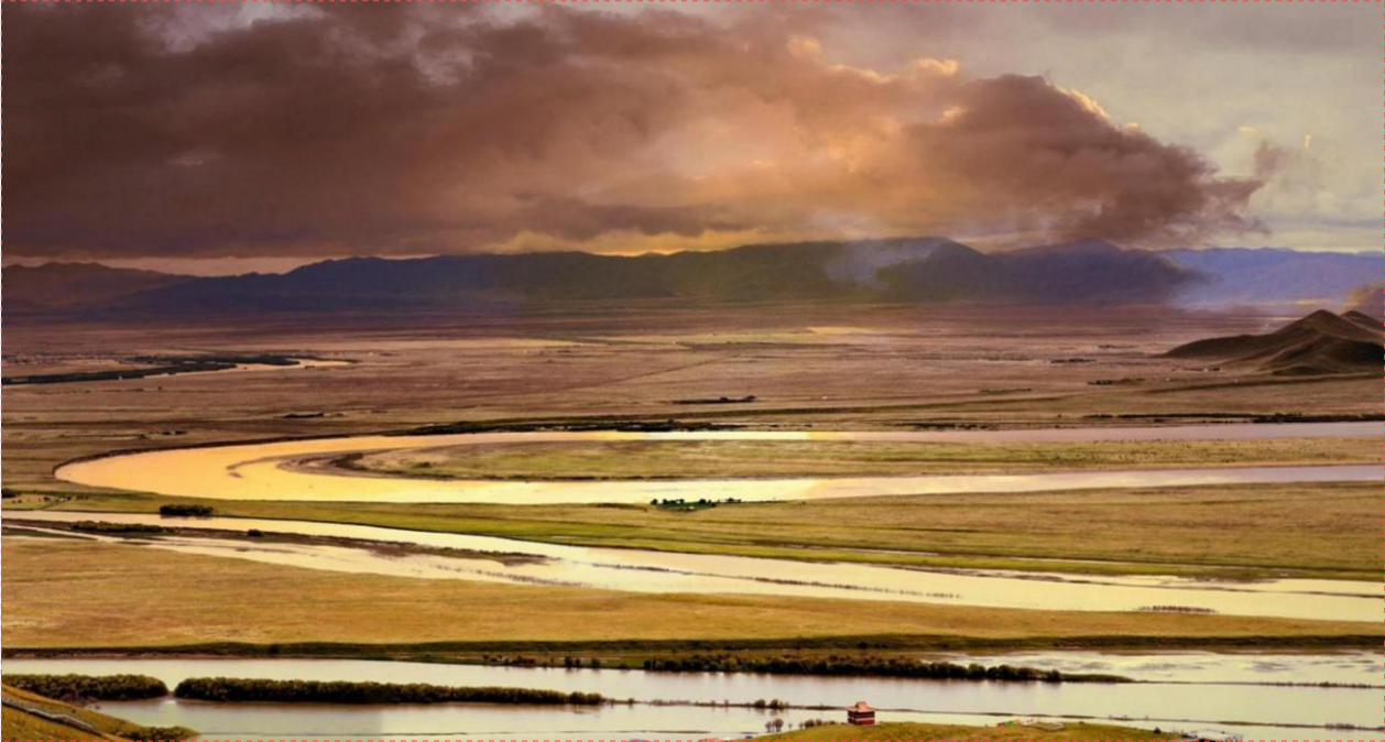黃河發源于青海巴顏卡拉山自西向東,迂回曲折,在四川若爾蓋縣唐克鎮與白河匯合,形成了壯美的九曲黃河第一大轉彎,但見黃白二河爭流,風姿