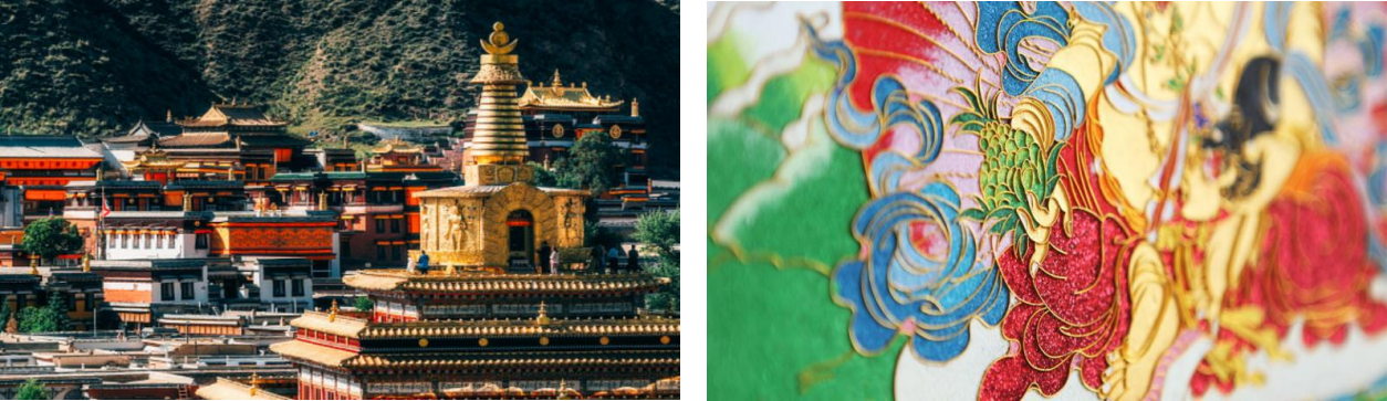 【非文化遺產-唐卡制作】(游覽時間約 2 小時)在這里我們將親手體驗唐唐卡制作過程。唐卡是藏族文化中一種獨具特色的繪畫藝術形式。具有鮮