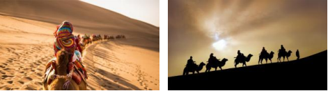 1、從景區大門口自費乘駱駝至鳴沙山景區主峰下駱駝可自行拍照滑沙,游玩后繼續乘駱駝至月牙泉附近的停駝場。參觀月牙泉后可選擇步行或自費乘坐景區觀光車返回。