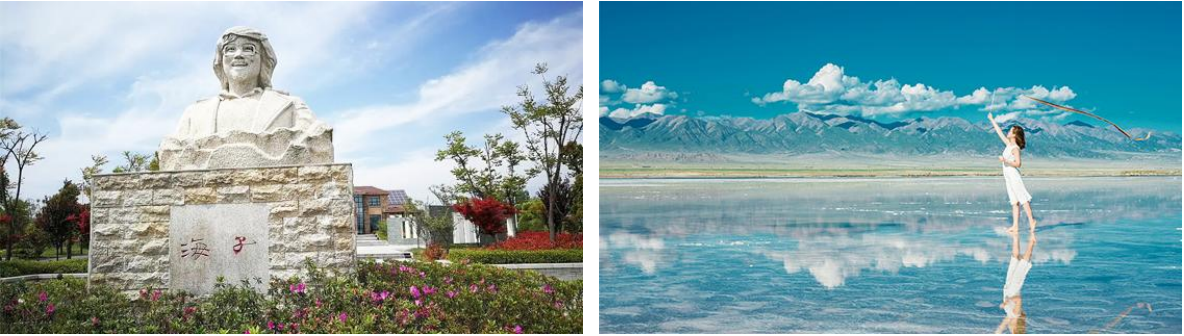 早餐后乘車赴德令哈,參觀【海子紀念館】靜靜地矗立在巴音河畔,是規模不大的一座具有徽派風韻的建筑。河邊是海子詩歌碑林,其中一塊刻著《姐姐,今夜我在德令哈》的巨大詩碑是昆侖玉材質的,上面刻有海子的頭像,笑容如陽光般燦爛。詩人雖已故去,但他雋永飄逸的詩、純真質樸的情,永遠眷留了在這片神奇而美麗的土地上。午餐后,繼續乘車赴茶卡鹽湖,游【茶卡鹽湖】或【茶卡天空一號】(游覽 2 小時),茶卡鹽湖被旅行者們稱為中國“天空之鏡”,被國家旅游地理雜志評為“人一生必去的 55個地方”之一,鹽湖水域寬廣,銀波粼粼。天空白云悠悠,遠處蒼山崢嶸,藍天白云、雪山映入湖中,如詩如畫。四周牧草如茵,羊群似珍珠灑落。漫步湖上,猶如進入鹽的世界。在這里,可以乘小火車深入湖中觀光,可以觀看現代化大型采鹽船采鹽時噴水吞珠的壯麗場景,可以欣賞鹽湖日出和晚霞的絢麗畫卷,可以透過清盈的湖水,觀賞形狀各異、正在生長的栩栩如生的朵朵鹽花,探求湖底世界的神秘,還可以領略到漲潮后湖面上留下的滾滾鹽濤奇觀。入住酒店。