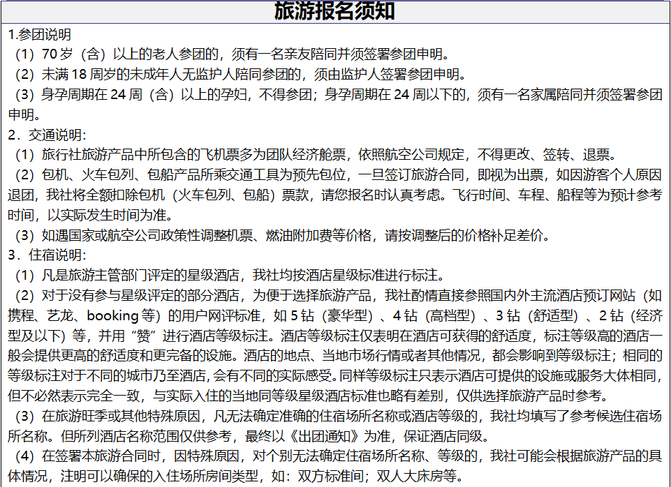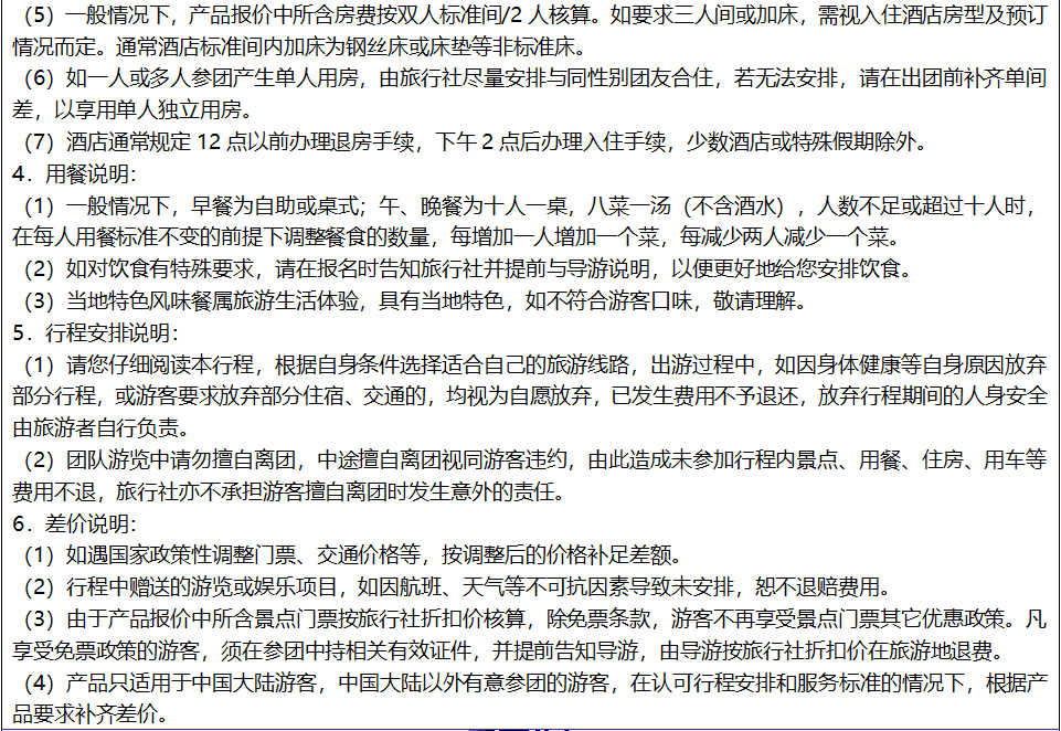 ◎以上行程安排可能會(huì)因航班、天氣、路況等不可抗力因素而作出調(diào)整。在不影響行程和接待標(biāo)準(zhǔn)前提下,經(jīng)全體游客協(xié)商同意后,進(jìn)行游覽順序調(diào)