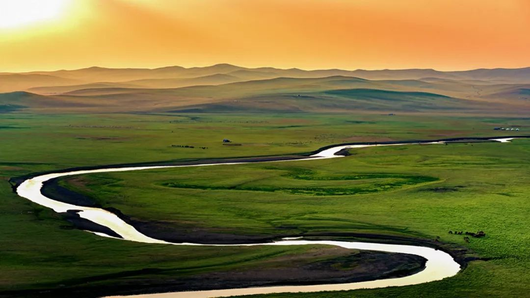 【呼倫貝爾草原】它平坦、大氣磅礴、極致遼闊,仿佛天空之下,空無一物。也許關于草原的定義,就來源于呼倫貝爾。如果說每個人心中都有一片遼闊的草原,那多半說的就是呼倫貝爾 ,這里的天空明凈如洗 ,云團為無垠的綠毯打著光影,草尖泛著金色的光芒隨風輕搖,肥碩的牛羊不知疲倦地低頭啃食……