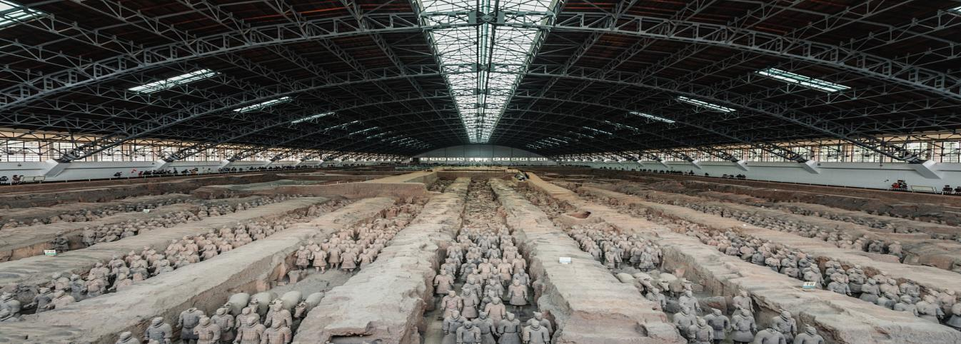 早餐后,乘車約1小時赴臨潼,參觀最完整的中國唐文化標志性景區【唐·華清宮】(約1.5小時 自理:華清宮電瓶車往返20元/人或驪山往返索道60元/人),這里因驪山亙古不變的溫泉資源、烽火戲諸侯的歷史典故、唐明皇與楊貴妃的愛情故事及西安事變的發生地而享譽海外。華清宮本是一個普通的皇家避寒宮殿,華清池因楊貴妃而享譽古今。一千多年前三郎與玉環的愛情,在飛霜殿內、在九龍湖上、在石榴樹下、在貴妃池旁,恩愛十年抵不上馬嵬士兵嘩變,是愛?是恨?美人已去,池仍在,慕名而來只為一睹貴妃出浴的香艷之地。中餐品嘗當地特色美食,后讓我們共同期待3D巨幕電影【秦始皇和他的地下王國】或者VR沉浸式穿越時光隧道,走進大秦墓室的【大秦印象VR體驗中心】(贈送項目無退費)。后參觀“世界第八大奇跡”、肅立于地下兩千年之久的【秦始皇帝陵博物院】(約 2.5 小時 自理:兵馬俑電瓶車單程 5+15 元/人),(1、2、3 號坑、銅車馬展廳),這是世界上最大的“地下軍事博物館”世界考古史上最偉大的發現之一,龐大的地下博物館埋藏著中國第一位皇帝秦始皇陵寢的守護軍隊,近萬人與真人真馬同樣大小的陶俑組成了龐大的軍隊,這些兵俑職責分明,軍陣整齊,將軍、武士、弓箭手、車士、騎兵應有盡有,不知不覺間便將你引入了戰馬嘶鳴,崖戰在即的秦軍戰營,使游人無不為之震懾。晚餐后入住酒店休息。