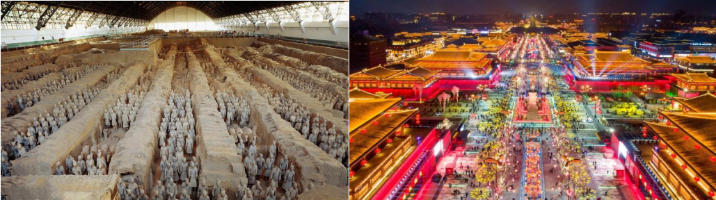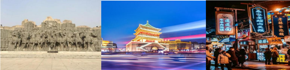 早餐后前往【西安博物院】(周二閉館),西安博物院是西安市的一座集博物館、名勝古跡、城市園林為一體的博物館。以展示的珍貴文物,唐代千年古塔、悠揚的雁塔晨鐘、秀麗的園林景觀而聞名。以西安博物院的中心建筑小雁塔為設計元素,小雁塔是西安博物院收藏的最大文物。館藏陳列以“古都西安”的為總標題,又分為“千年古都”和“帝都萬象”兩部分。中餐品嘗熱騰騰的,傳遞祥和與溫暖的《餃子餐》中餐后參觀世界上規模最大保存最完整的軍事堡—【明城墻】(約1小時),這座雄偉的西安古城墻是明代初年在唐長安城的皇城基礎上建筑起來的,也是西安這座歷史文化名城的重要標志之一,其規模之大,保存之完整為世界少有,在此可領略古色古香的古城風光。游覽非物質文化美食街【永興坊】,這里沒有重復的店面,沒有加盟店,都是西安本土出名的老店或開的分店咸陽過來開的面館,潼關過來做的肉夾饃,陜北橫山燉的羊肉……永興坊地地道道舌尖上的美食,一口吃遍陜西,讓我們一起搭乘吃貨號小火車,在永興坊里開心的“逛吃,逛吃,逛吃……”隨后身著唐裝,讓每一個人重新體驗到一種流動的東方文化精髓。后前往新晉網紅打卡地【長安十二時辰】(參觀約1.5小時左右)長安十二時辰主題街區是以唐市井文化為源點,以網劇《長安十二時辰》IP為主題,以沉浸式體驗為核心,在建筑、軟裝、錢幣、人物、服裝、語言、音樂、故事等領域進行全唐化包裝,同時圍繞深度沉浸式故事體驗,設置配套的餐飲、文創、演藝等業態內容,整體打造集全唐空間游玩、唐風市井體驗、主題沉浸互動、唐樂歌舞演藝、文化社交休閑等為一體的全唐市井文化體驗地。游覽【大唐不夜城】(約1小時)是中國十大高品位文化步行街、西安年·最中國主會場。一個耗資50億打造的新唐人街,整條街由大唐群英譜、貞觀之治、武后行從、霓裳羽衣、雁塔題名、開元盛世等13組大型文化群雕貫穿其中。還有專門為這條街量身打造的璀璨絢爛的景觀燈,結合周圍恢弘大氣的精致仿唐建筑群,以及每隔50米一組不同風格各色駐場樂隊!沉浸其中,拍照不停,興奮不能自拔,宛如夢回盛唐!現已成為來西安旅游必要多次前往的網紅文化街區,在這里還可以偶遇網紅不倒翁小姐姐,與其牽手,一起夢回大唐!用餐后入住酒店休息!!