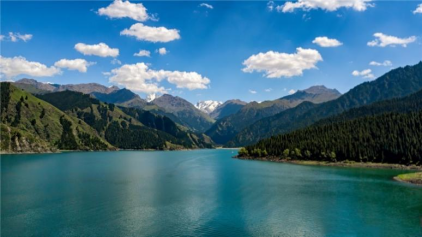 早餐后司機師傅依次接到所有客人后,出發前往【天山天池】(包含門票及區間車)天池的風光像畫卷一樣展開,眼前是一片湛藍的湖水,有點冰川湖的色澤,淺灘處非常清澈。由近及遠,一座座山巒呈現倒八字矗立在湖面上,好像一重重屏障,逐漸退后。遠處是博格達峰,皚皚白雪的山頂清晰可見。這時候天空中沒有云朵,山巒和湖水更顯得立體生動,一定要用相機留下不可多得的畫面;